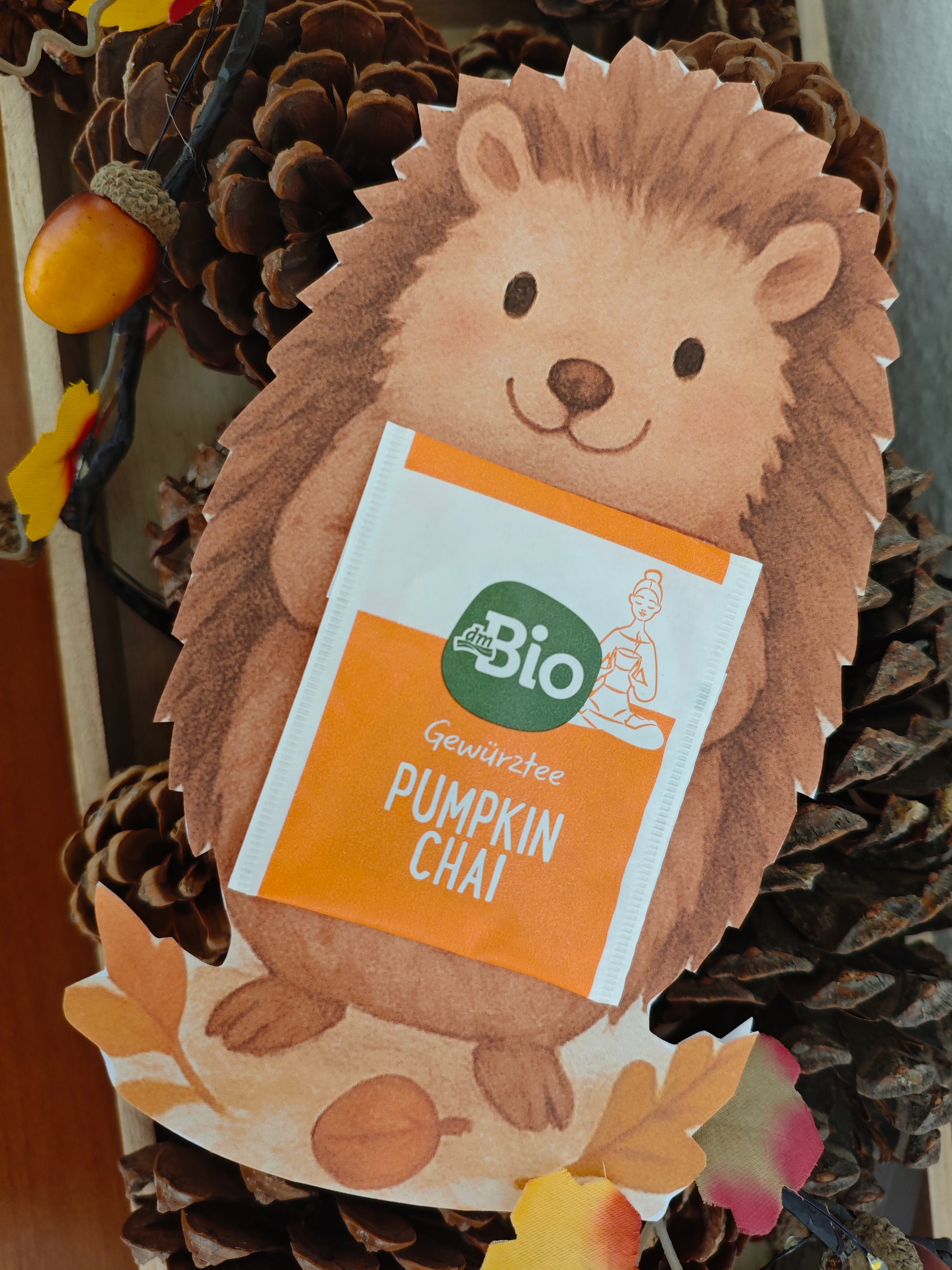 - Bastelvorlage für Teebeutel mit süßer Igelillustration für den Herbst