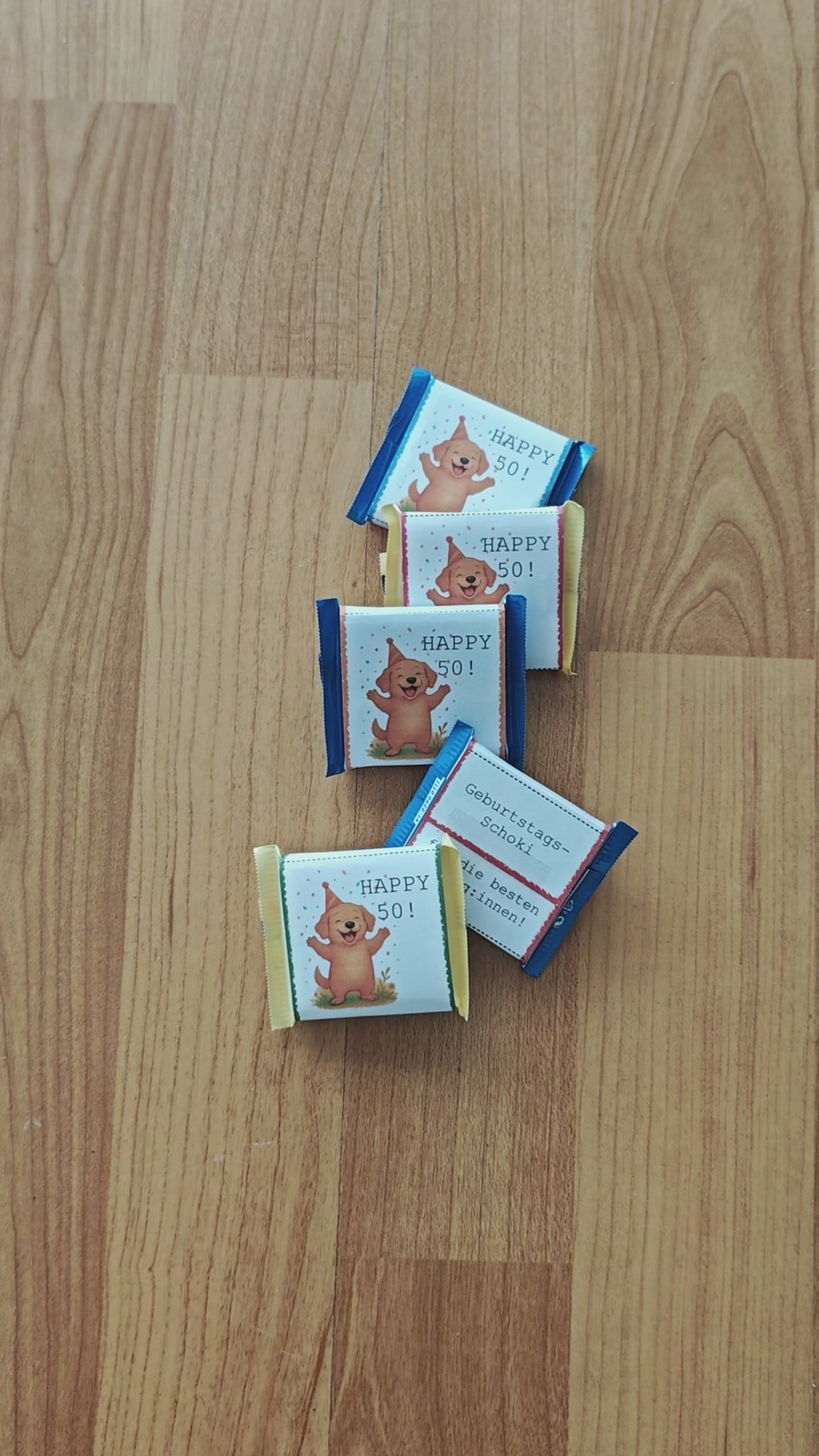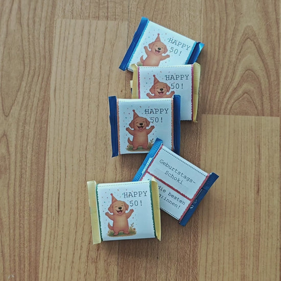 - farbige Bandarolen für Mini-Rittersport mit dem Motiv "Happy 50" und dem niedlichen Hund