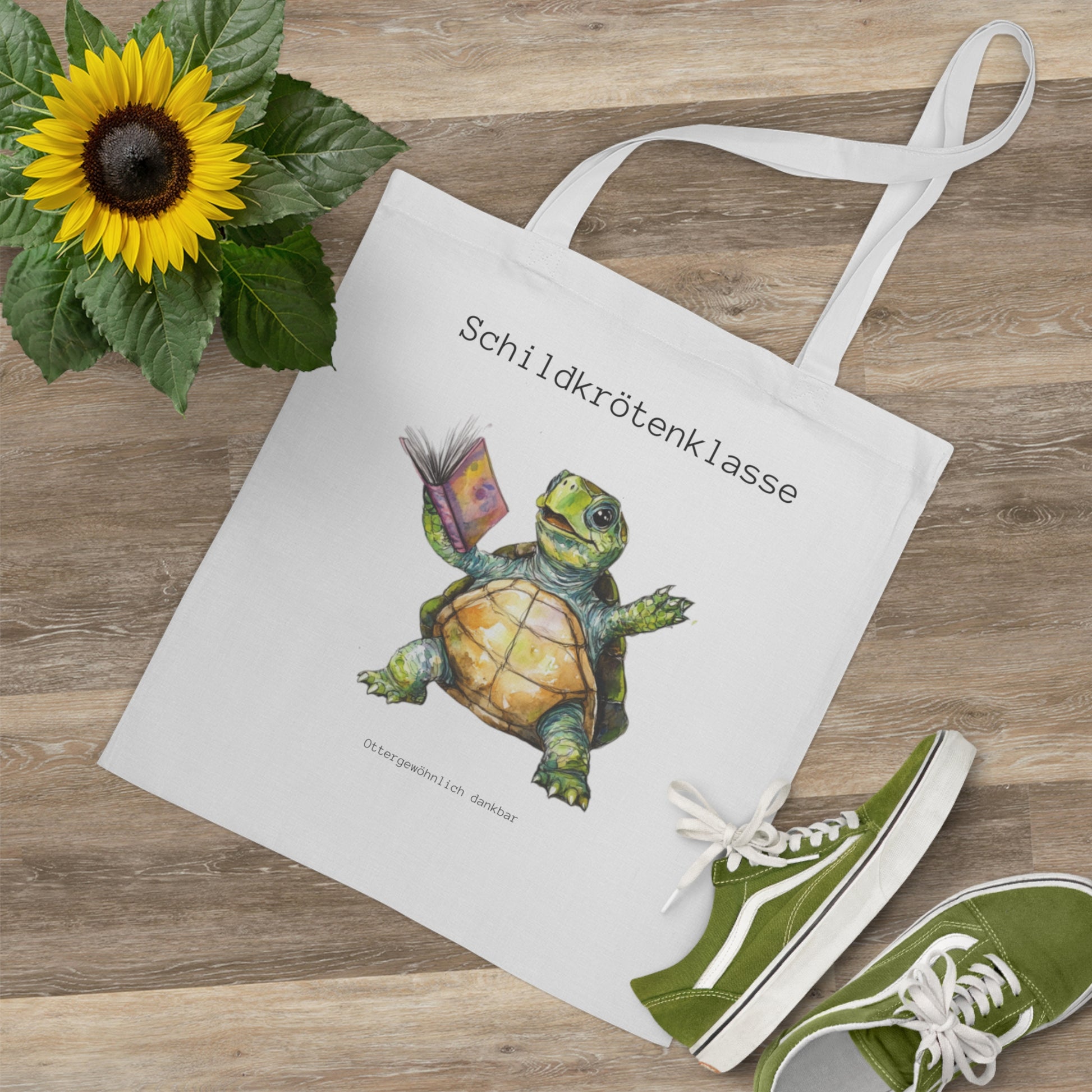 Dieser Jutebeutel ist ein liebevoller Alltagsbegleiter für Lehrer:innen, die mit Geduld, Gelassenheit und einem starken Panzer durchs Schuljahr gehen.