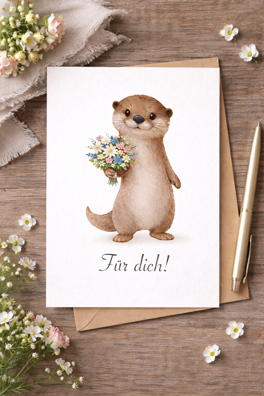 - Digitale Klappkarte im Format DIN A5 mit liebevollem Ottermotiv