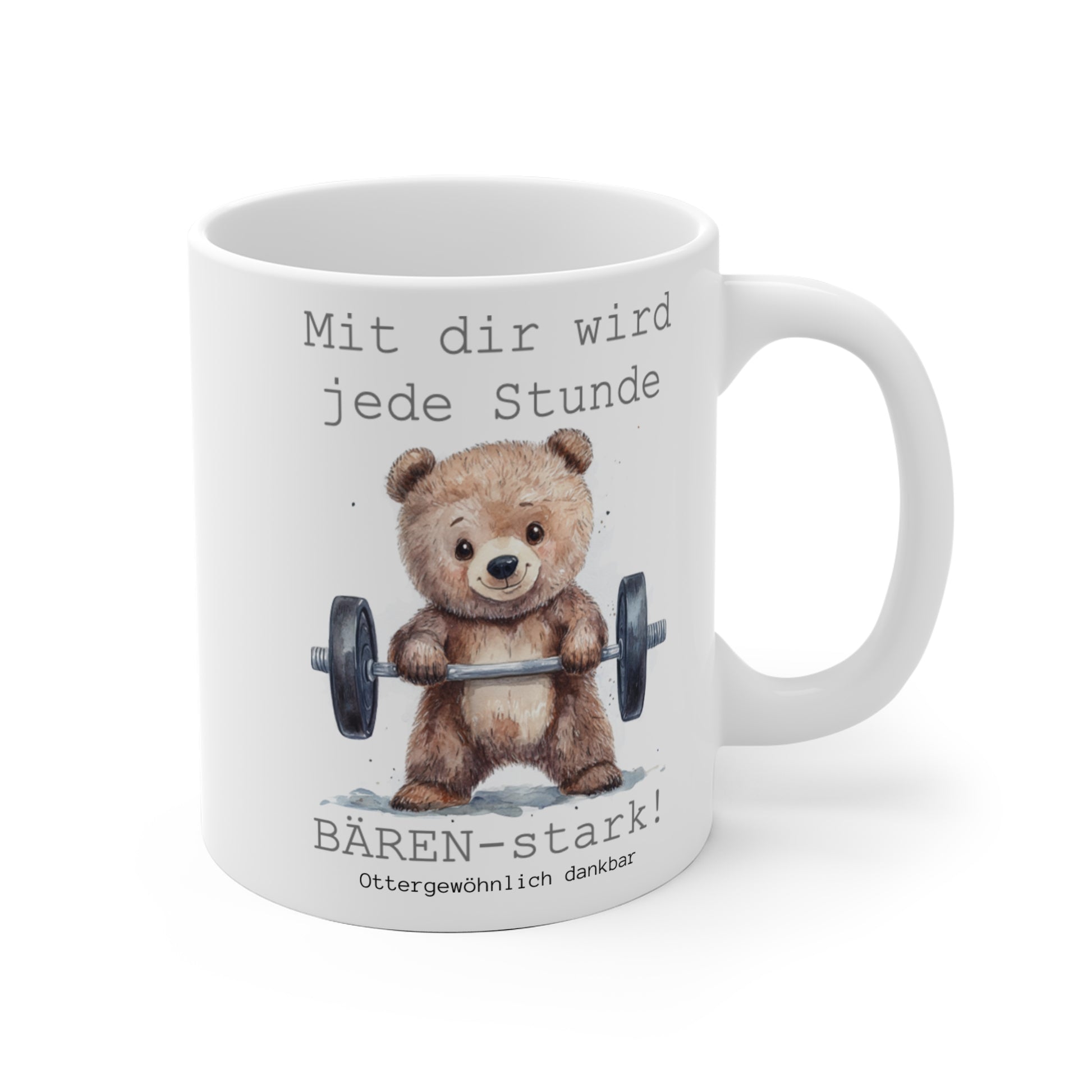 Diese liebevoll gestaltete Tasse ist eine kraftvolle Anerkennung für alle Lehrer:innen, die jeden Tag mit Geduld, Herz und Humor meistern. Der Spruch „Mit dir ist jede Stunde BÄREN-stark“ sagt mehr als 1.000 Worte – er zeigt Wertschätzung, Dankbarkeit und ein Lächeln zugleich.