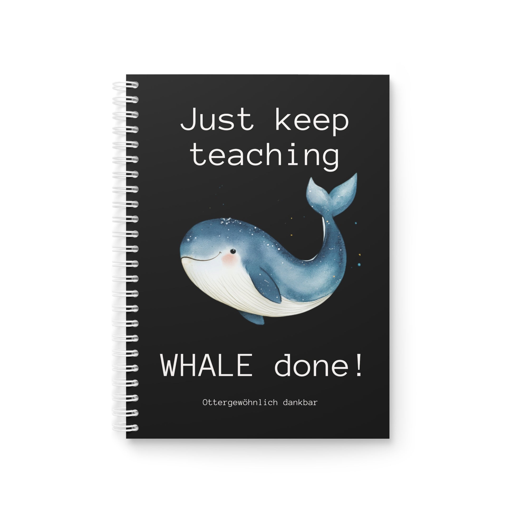 Mit dem Spruch „Just keep teaching, WHALE done!“ und einem liebevoll gezeichneten Wal erinnert dieses Notizbuch daran, wie großartig deine Arbeit ist – selbst wenn’s mal wellig läuft.