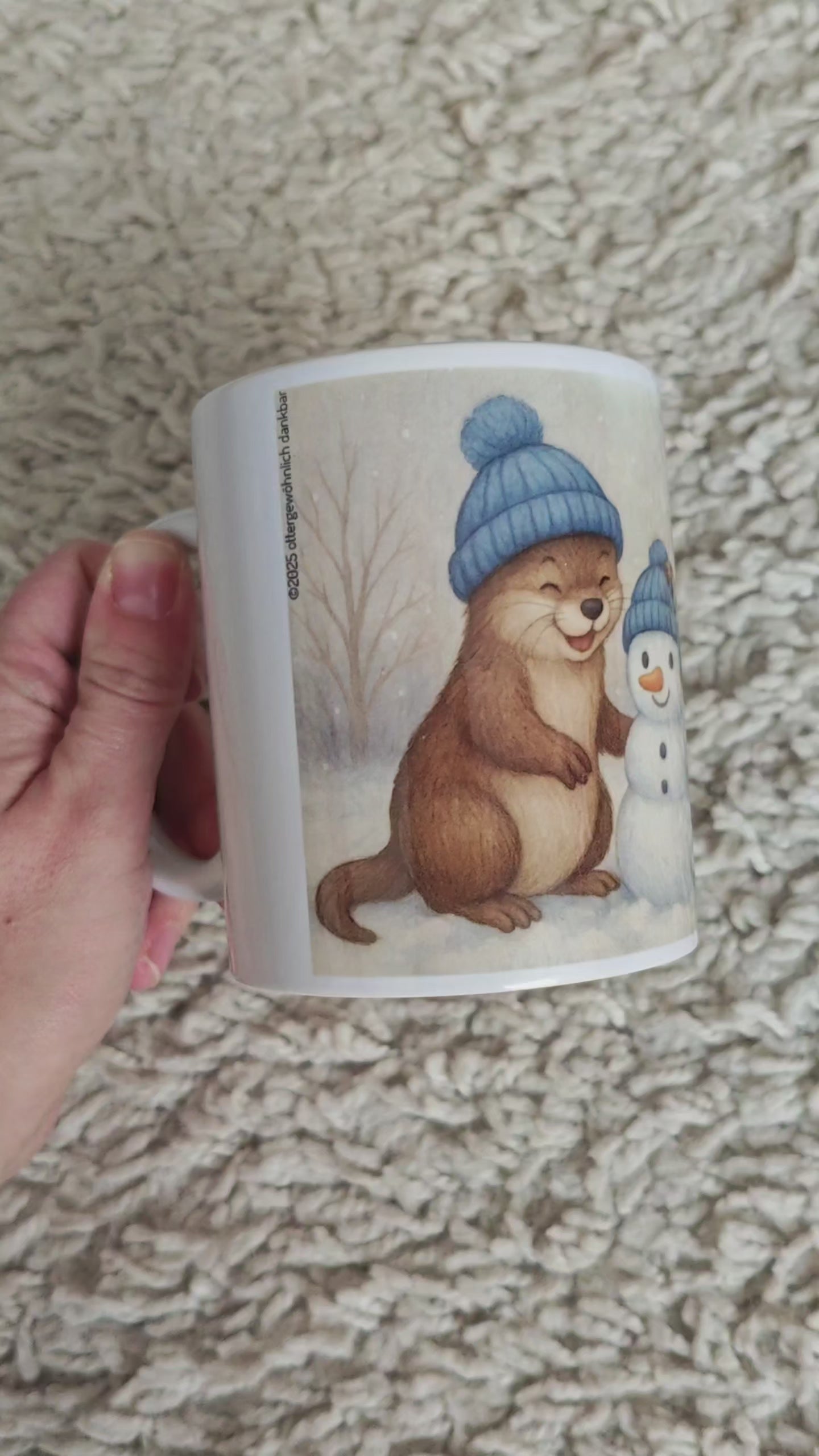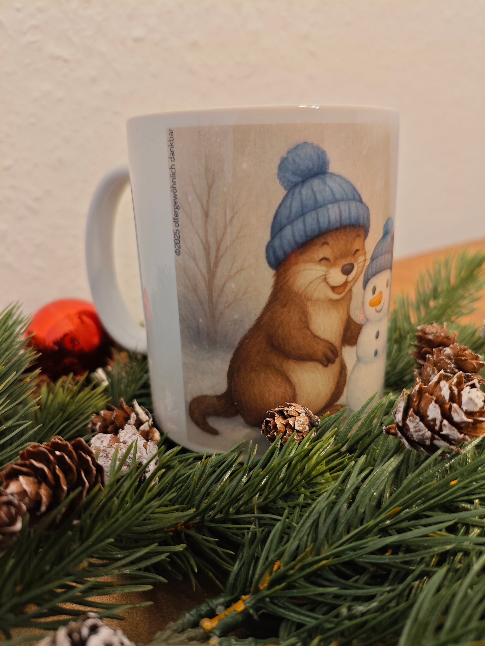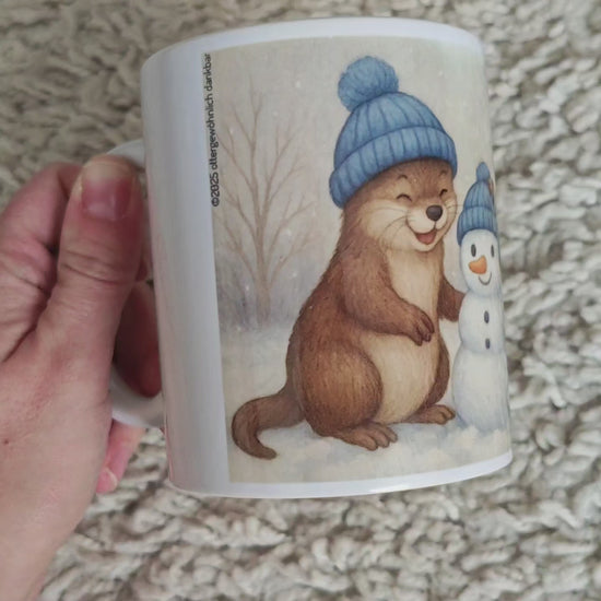 Diese liebevoll gestaltete Tasse ist Teil meiner limitierten Winteredition 2025 und zeigt zwei Otter, die gemeinsam einen Schneemann bauen – ein Motiv voller Winterzauber, Freundschaft und Gemütlichkeit.